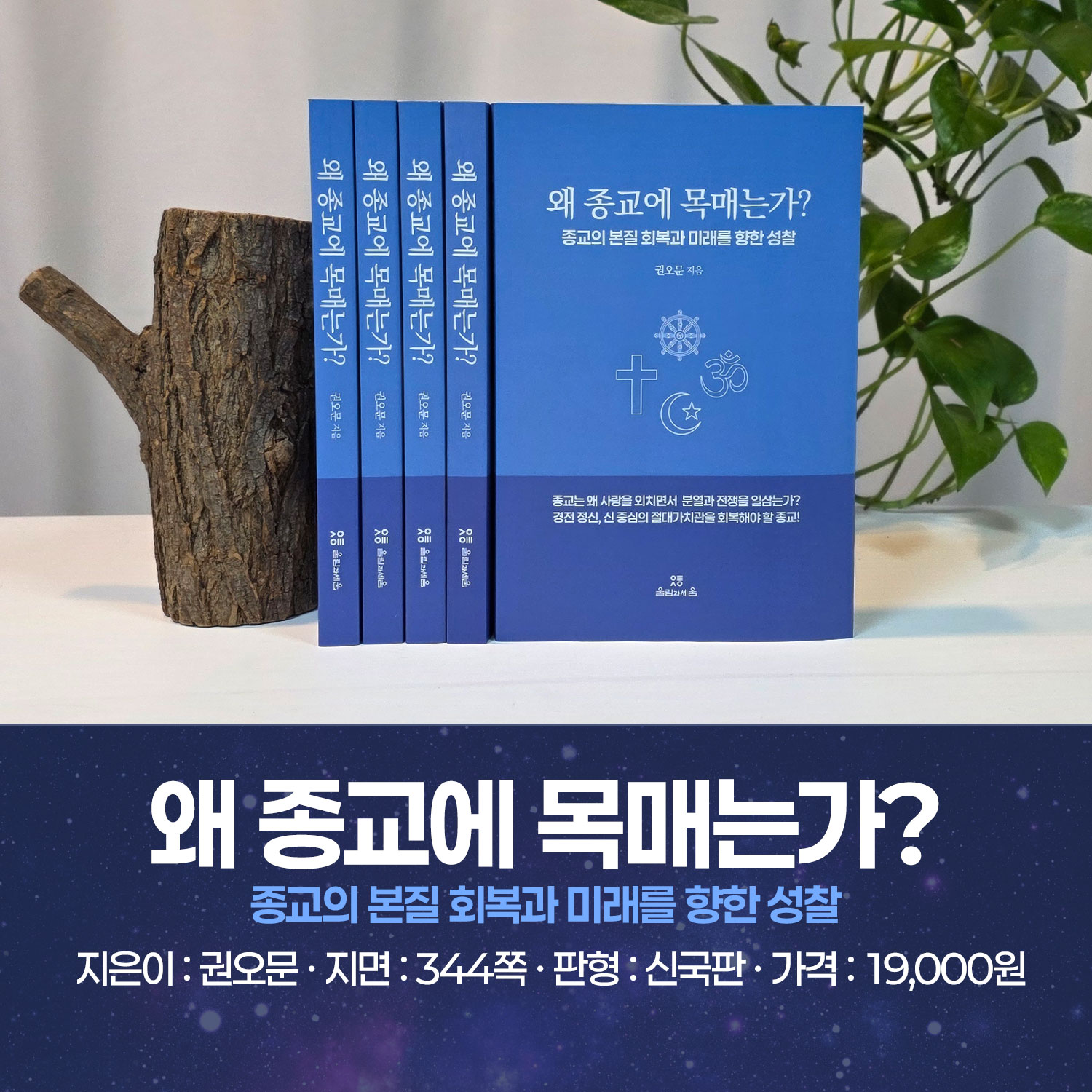 권오문 작가의 29번째 새 책, <왜 종교에 목매는가?>가 <울림과세움> 출판사에서 나왔습니다. 인류 역사 속에서 끊임없이 이어져 온 신과 종교에 대한 근원적 질문을 던지며, 위기에 처한 종교가 어떻게 본질을 회복하고 미래로 나아가야 할지에 대한 깊은 성찰을 담고 있는 책입니다.